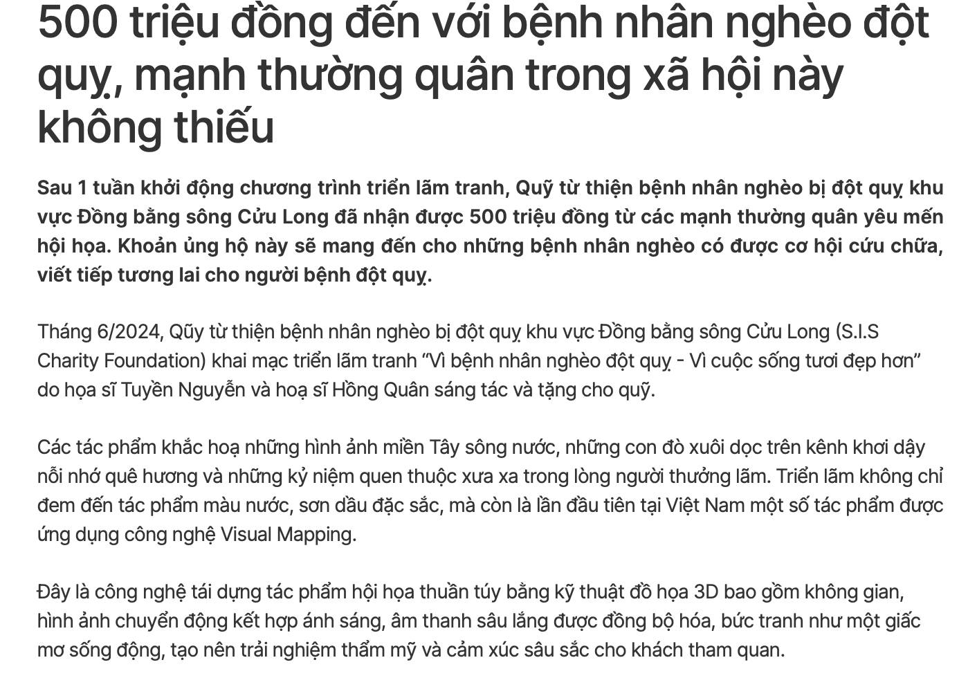 Tổ chức triển lãm tranh và quyên góp thành công gần 500 triệu đồng cho bệnh nhân nghèo khu vực ĐBSCL.